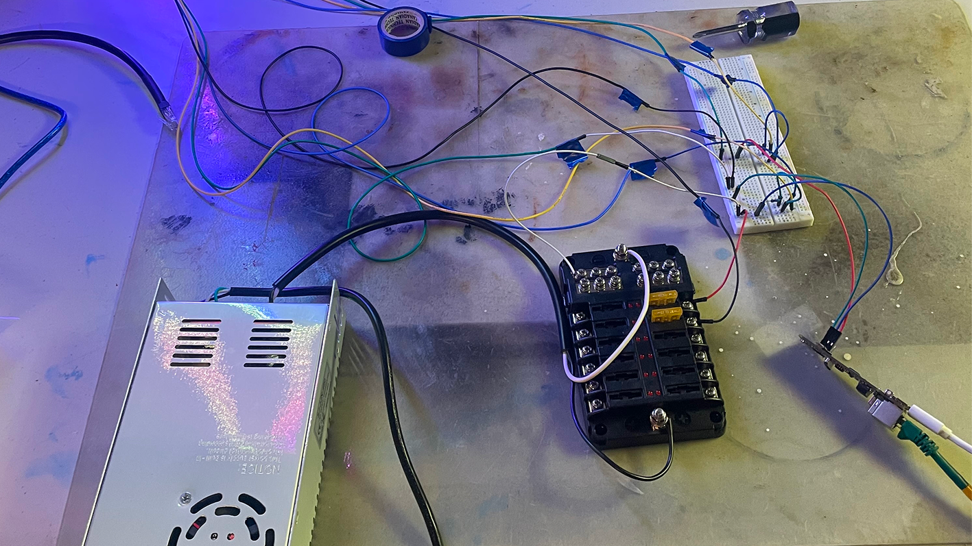 À partir de tous ces explorations et apprentissages, j’ai pu co-créer une première installation interactive pour le magazine Le Culte de l’UQAM, utilisant les ESP32, TouchDesigner et des bandes WS2815. Ce projet m’a permis de mettre en pratique l’ensemble des connaissances acquises, de la gestion électrique à la transmission réseau en passant par le contrôle en temps réel des animations lumineuses. En parallèle, un deuxième projet plus ambitieux, basé sur une structure de tubes lumineux interactifs, est actuellement en cours de création.